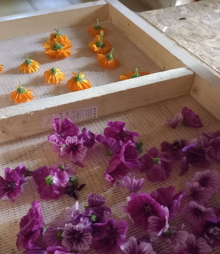 Pour cultiver des surfaces raisonnables et limiter le gaspillage, nous utilisons chaque fois que possible l’intégralité de la plante : feuilles, fleurs, branches, racines, sève… Cette approche nous permet de proposer une gamme variée de produits alimentaires et non alimentaires, chacun valorisant le meilleur de nos cultures.